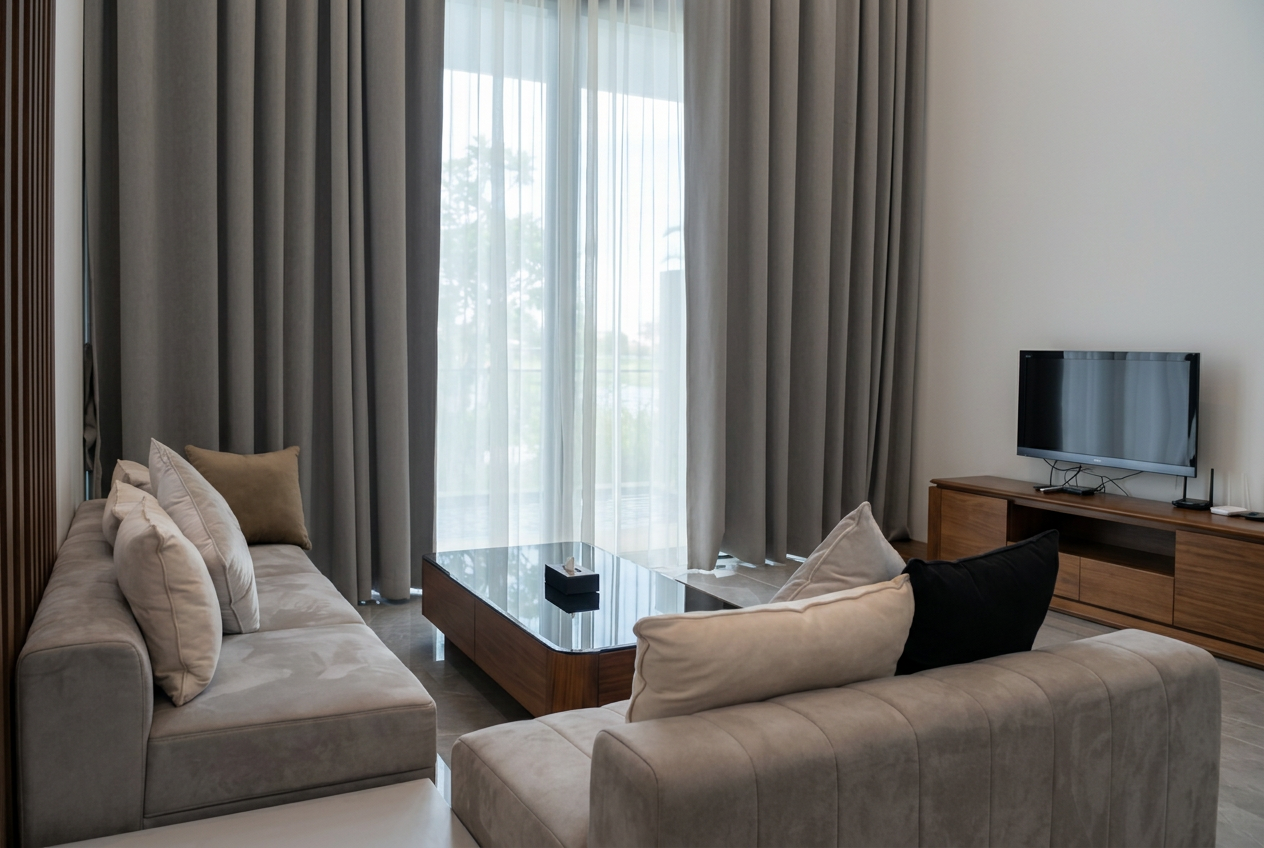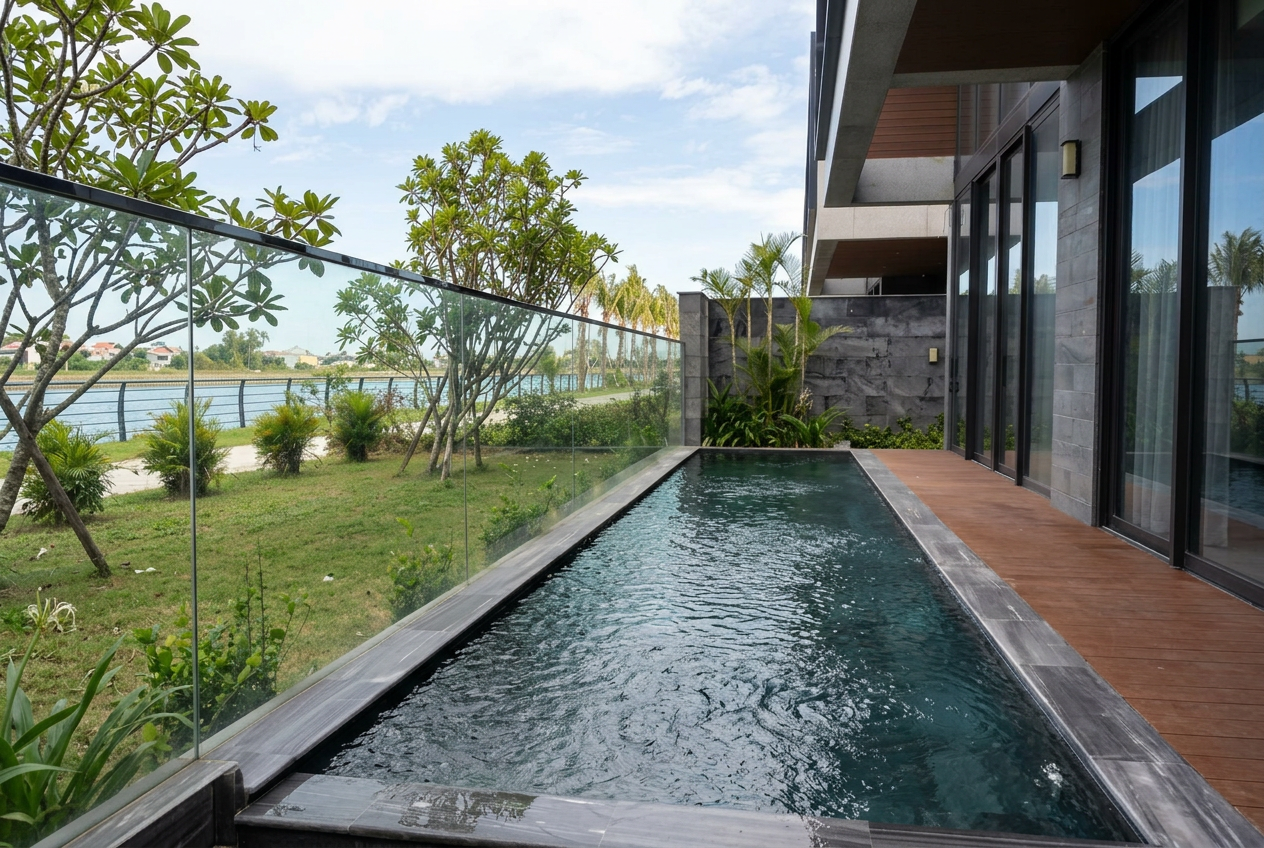 The riverside location provides natural cooling and views, while the gated perimeter ensures safety and privacy. Common areas and walking paths add to the quality-of-life feel without requiring you to leave the compound for daily living.